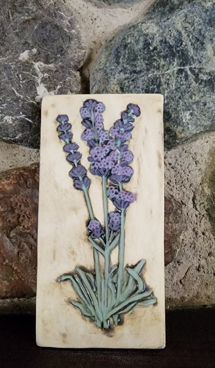 Lavender Ceramic Bas-relief Art Tile w/stand... Iron Oxide finish